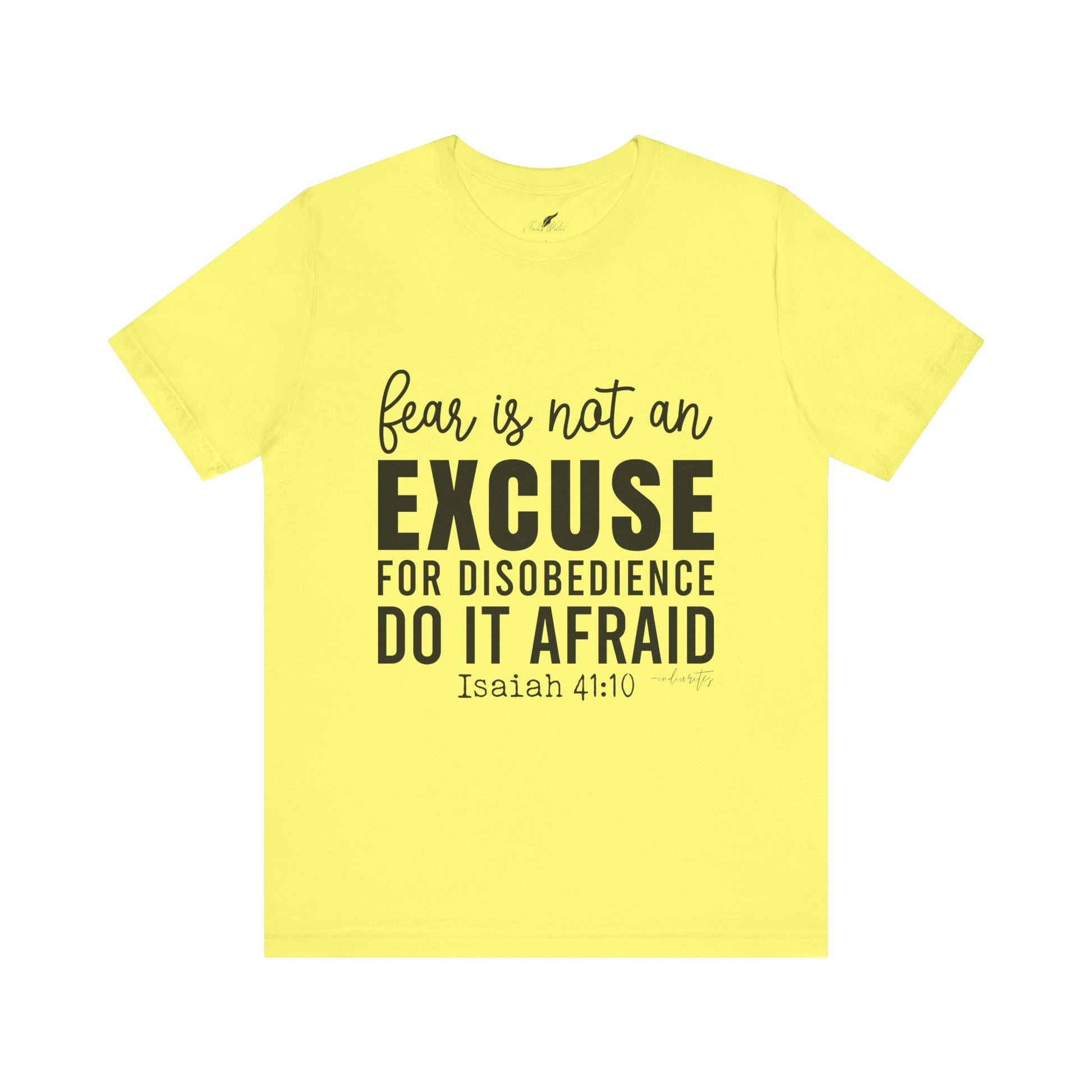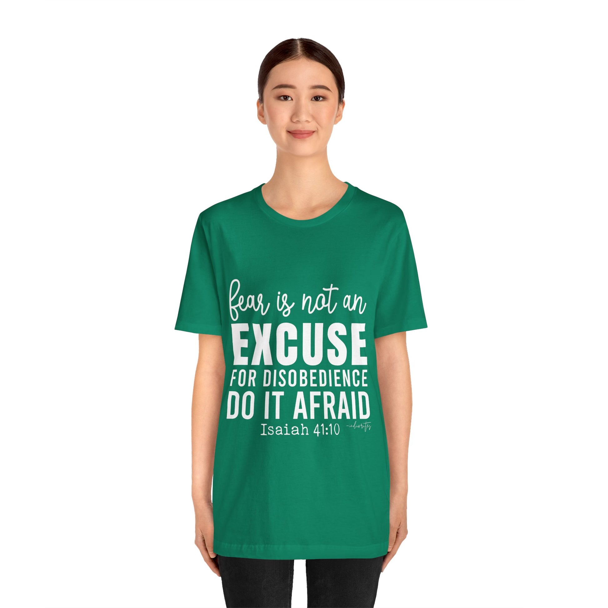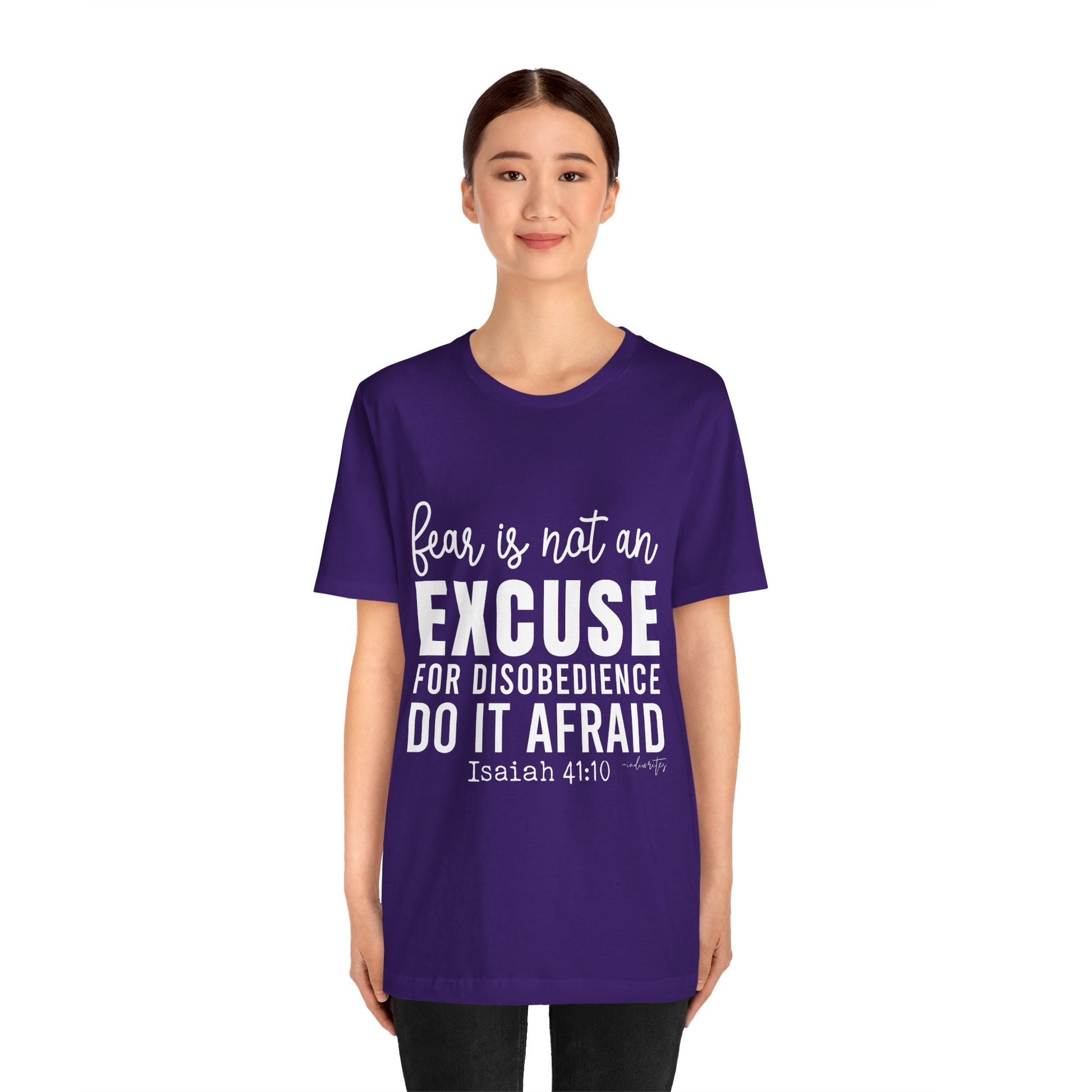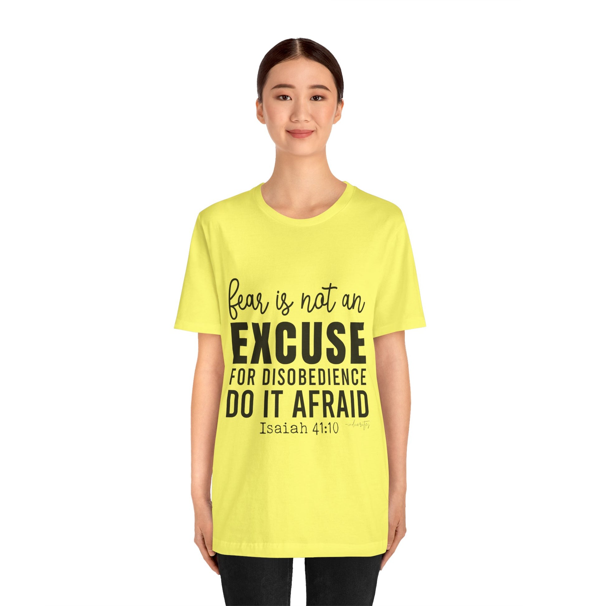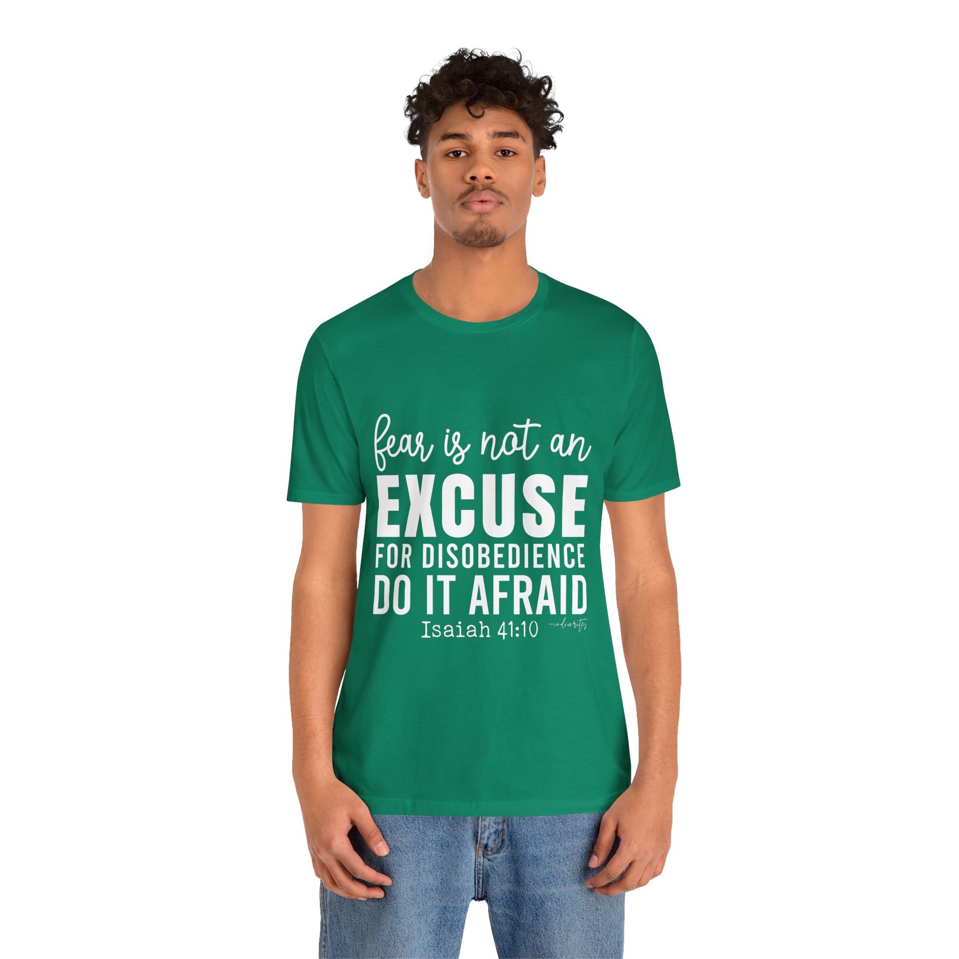 As you wear the "Do It Afraid" T-shirt, you're not just wearing clothing; you're making a bold statement about your faith and your determination to overcome fear through God's strength. This tee captures the essence of Isaiah 41:10, which reassures us of God's presence and strength, even in the face of fear. Let this tee be a source of empowerment, courage, and a reminder that you can achieve great things, even when fear is present. Declare your commitment to let go of excuses with boldness, and inspire others to conquer their fears and take courageous steps toward their goals.